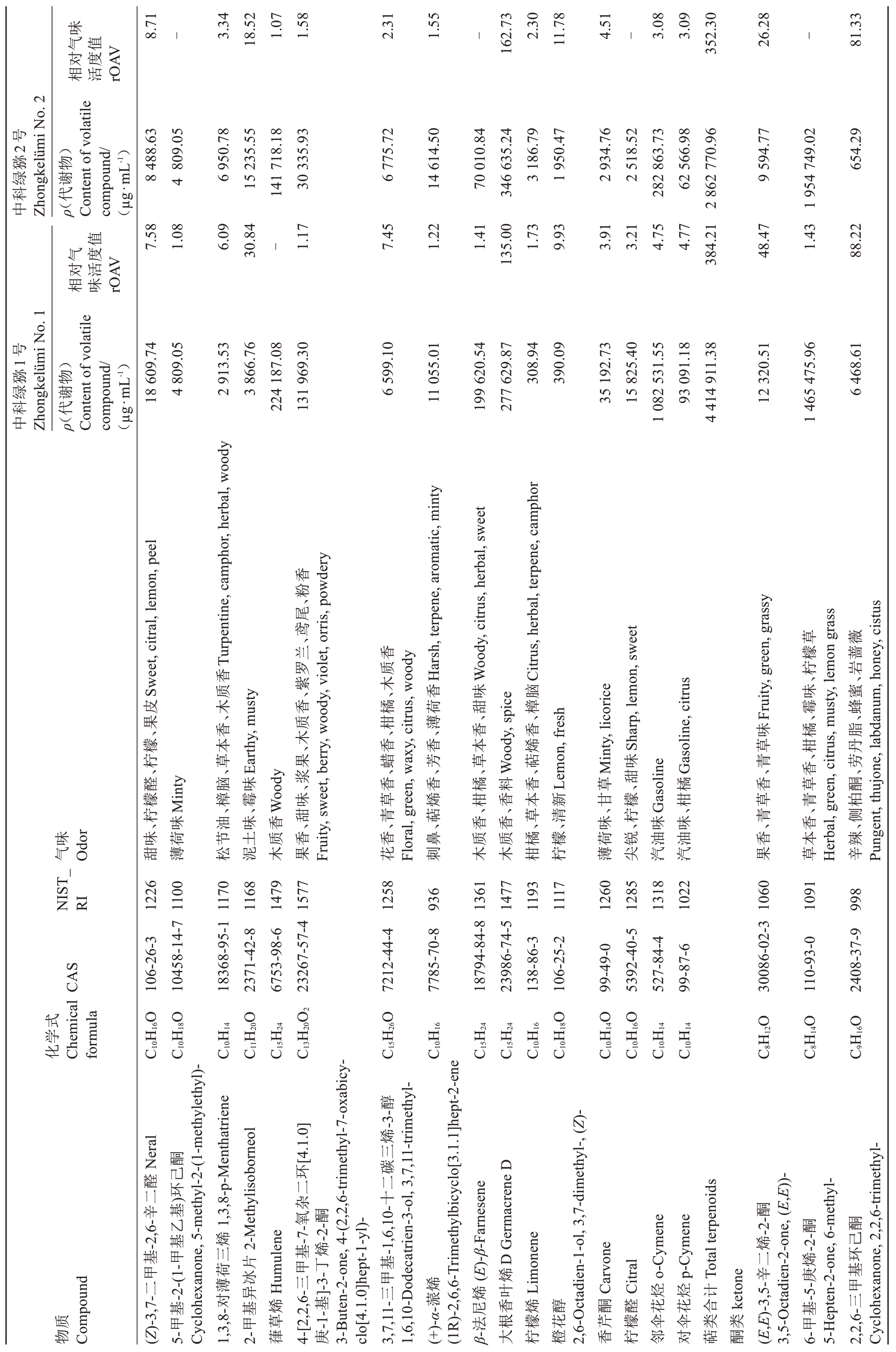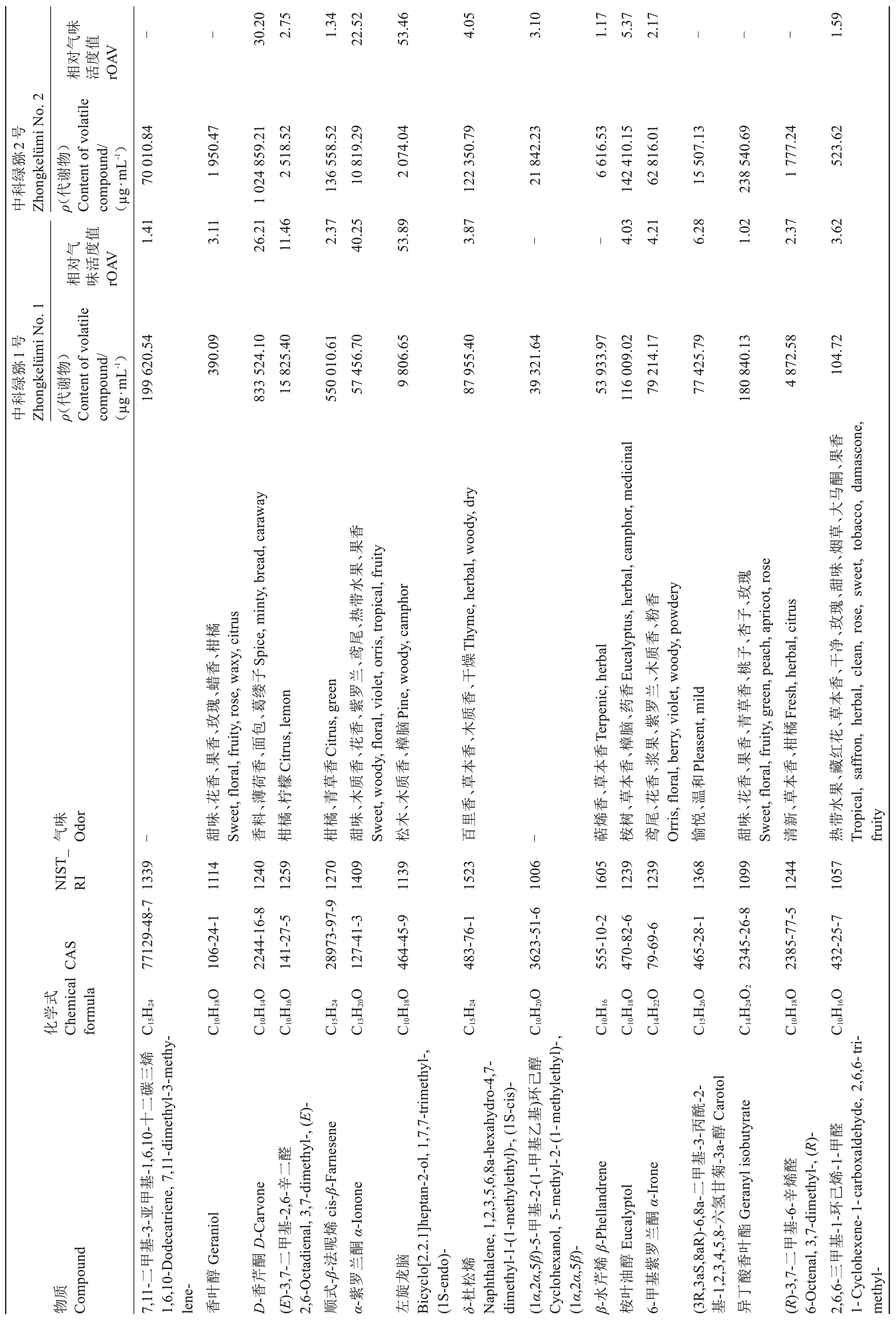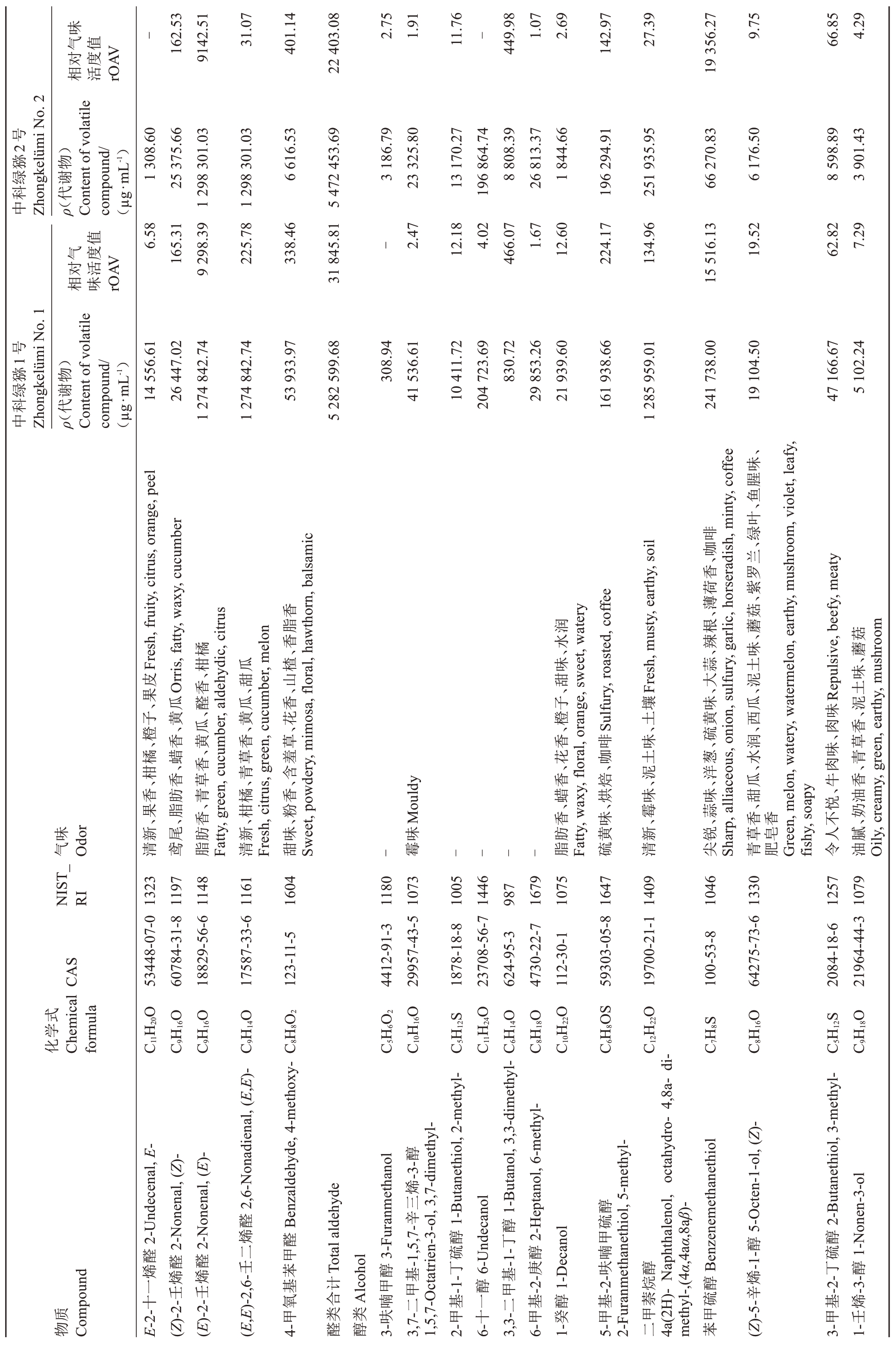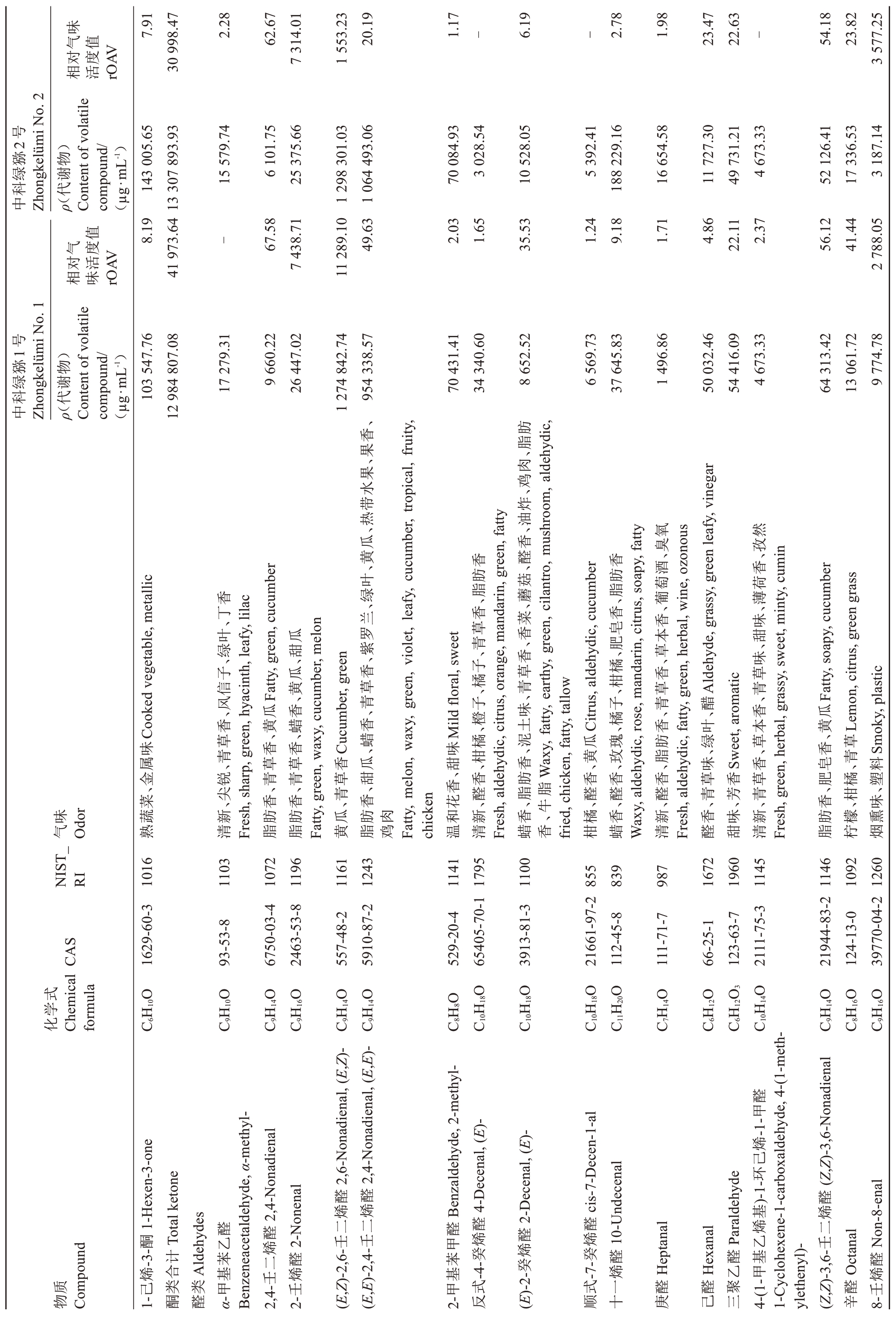 Table 5 Content of volatile compounds and ROAV in fruits of Zhongkelümi No. 1 and Zhongkelümi No. 2
