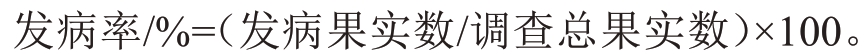 每个处理分别随机采集40 个果实,常温贮藏,待所有果实软化后调查每个处理的果实软腐病发病率并记录。