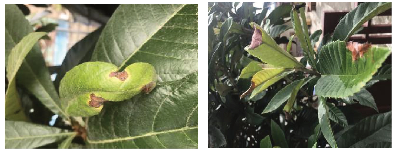 Fig. 1 Symptoms of loquat leaf spot disease in the field